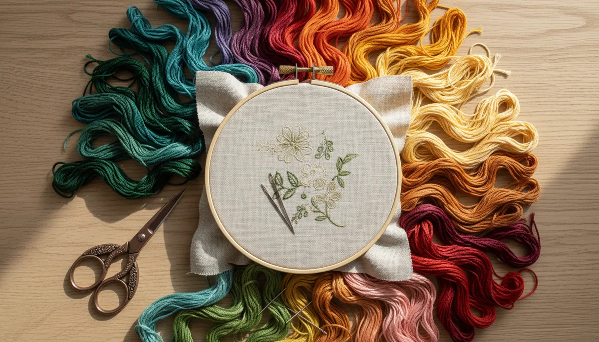 Découvrez comment choisir vos fournitures de broderie : fils, aiguilles, tambours, toiles et accessoires pour réussir tous vos projets.
