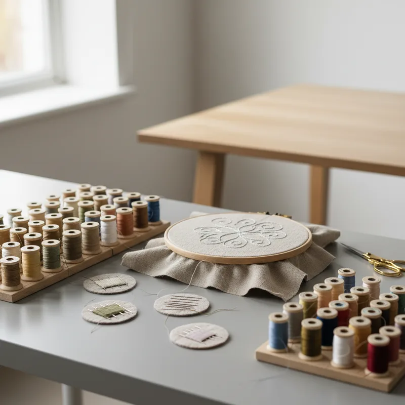 Équipement, fils, aiguilles et accessoires pour broderie professionnelle : liste complète, critères de choix et budget pour un atelier performant.