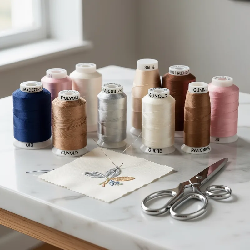 Le choix du fil détermine la qualité et la longévité de la broderie. Trois types dominent le marché : polyester, rayonne et métalisé. Chacun répond à des besoins spécifiques en termes de rendu, de résistance et de budget.